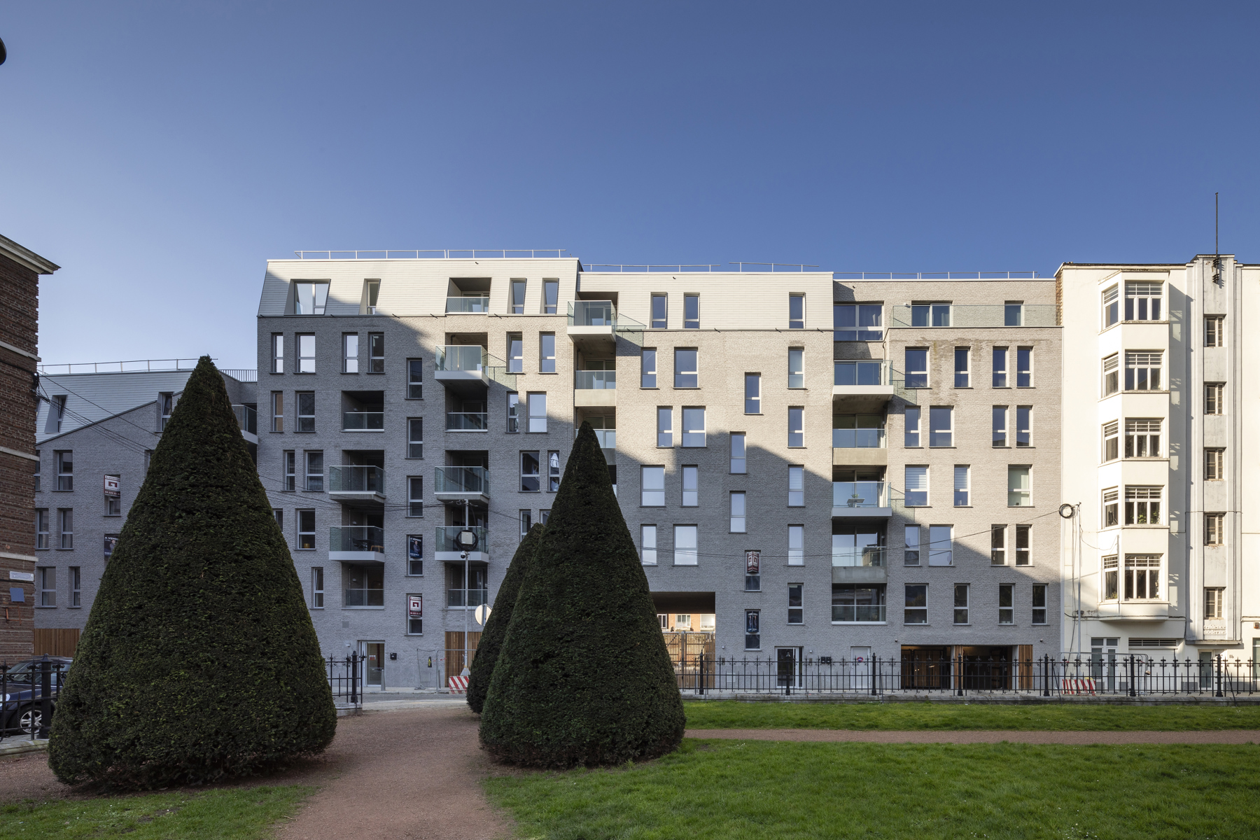 DescriptionIdéalement situé, face au jardin de l'Eglise Saint-Jacques (Place Emile Dupont), ne manquez pas cet appartement neuf présentant une surface de 111,43 m2. Cet emplacement de standing invite à la mobilité douce et propose de nombreux avantages (quartier calme avec proximité immédiate de toutes les commodités). L'appartement se situe au 6e et dernier étage et n'a qu'un seul voisin de palier ( la résidence comporte 4 entrées séparées afin de garantir la quiétude à chaque étage). Il se compose d'un hall d'entrée avec toilette, d'un séjour de 29,6 m2 avec espace cuisine ouverte complété par une agréable terrasse exposée Sud, de deux chambres, d'une salle de bains, d'une buanderie et d'un local technique. Par leur configuration et leur ergonomie, tous les locaux et les espaces de circulation sont adaptés aux jeunes et aux aînés, avec ou sans mobilité réduite. Sont inclus, un emplacement de parking privatisé et sécurisé en sous-sol, pour voiture et vélo ainsi qu'une cave. Avec la configuration en L de la Résidence, d'agréables espaces extérieurs aérés seront crées pour les habitants. Cette nouvelle Résidence est tout a fait unique dans ce quartier, ne manquez pas cette opportunité ! infos supplémentaires et visites: 04/222.21.21 |